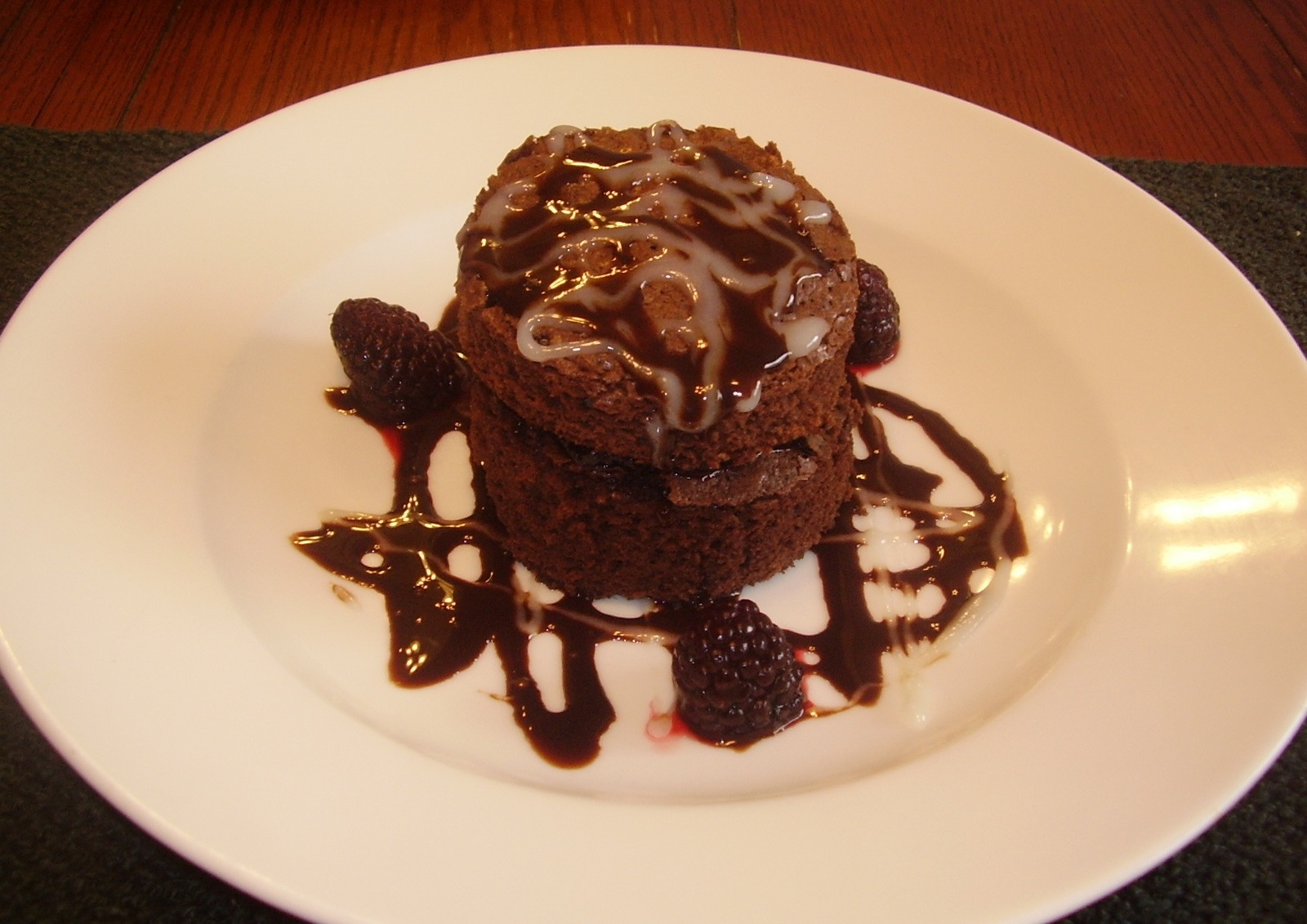 Double Fudge Brownie with Caramel and Chocolate Sauce