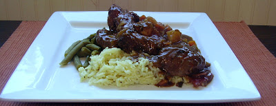 Braised Beef Shanks Served Over Jasmine Rice with Fresh Green Beans
