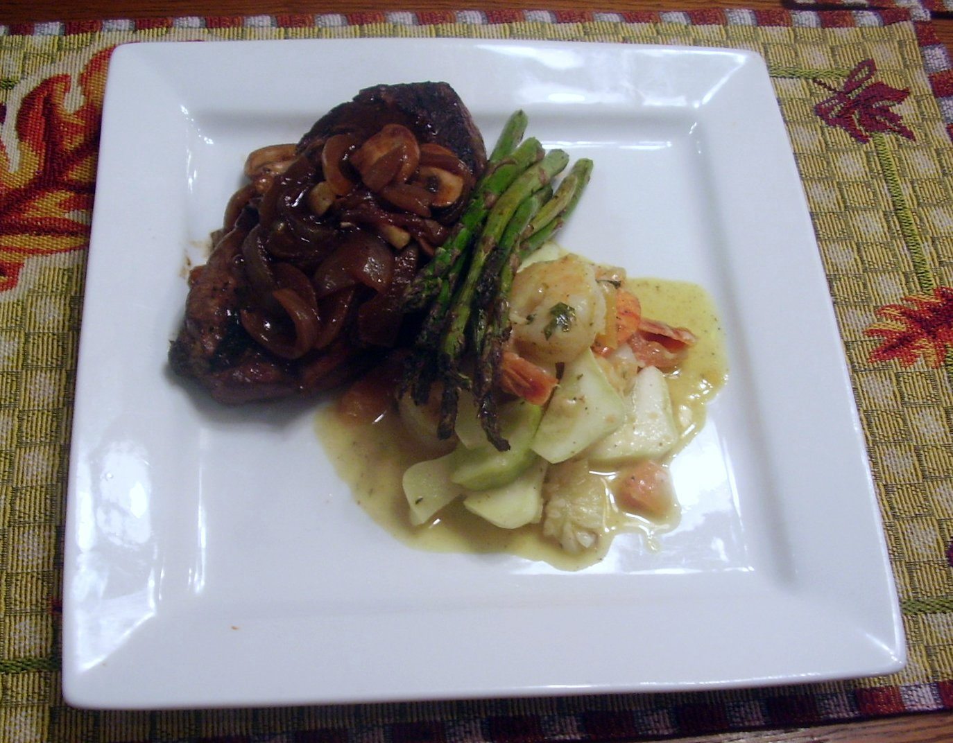 Grilled Steak & Prawns With Vegetables From Our Garden