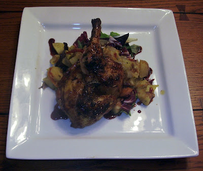 Herb Marinated Game Hen with a Red Wine Reduction and Roasted Vegetables